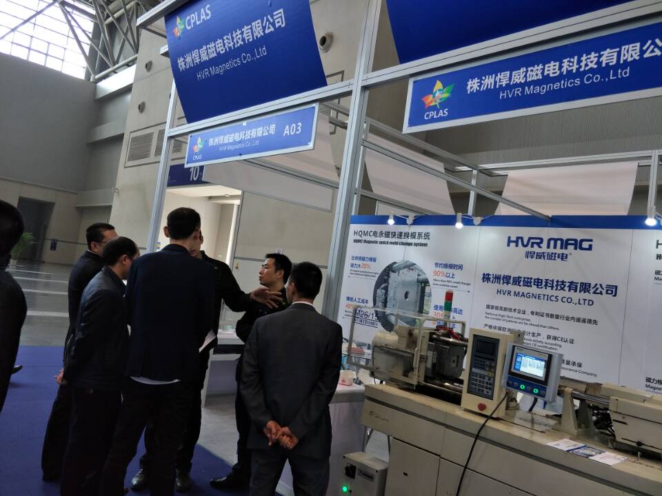 在已經結束的第三屆重慶塑料展會上,株洲悍威磁電科技有限公司的磁力快速換模系統吸引了展會的各個知名企業,我司在重慶片區當地的客戶紛紛前來觀展,并且在看到我們實際產品運作之后達成初步合作協議。